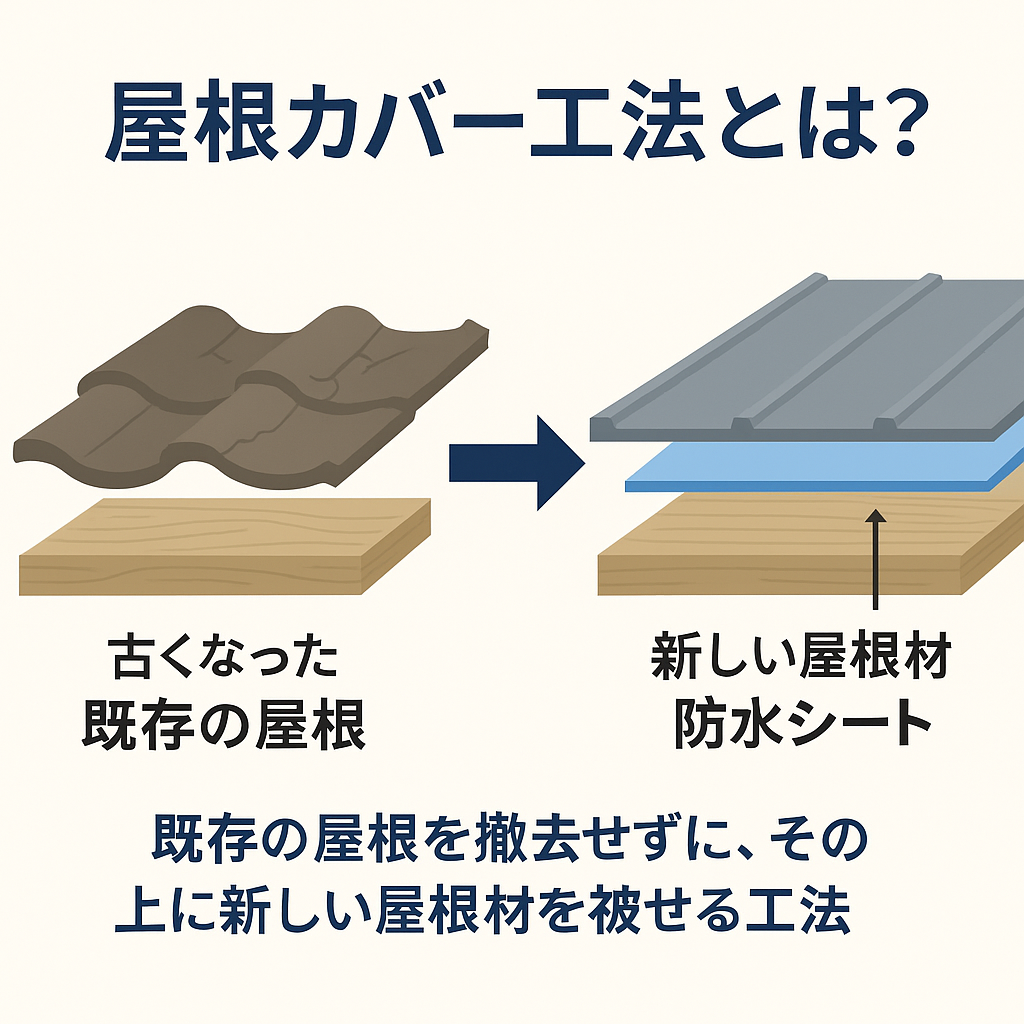 屋根カバー工法(重ね葺き工法)とは、既存の屋根材を撤去せず、その上に新しい屋根材を被せる施工方法です。